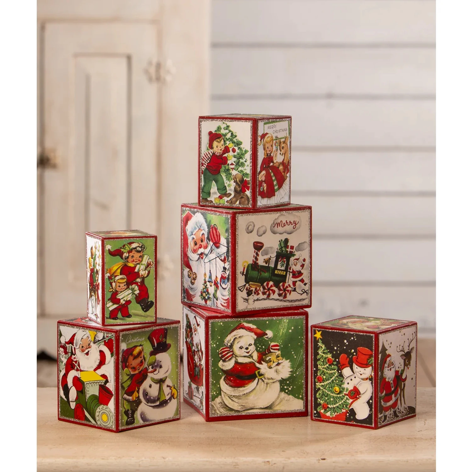 Bethany Lowe Set Of 6 Kitschmas Stacking Blocks Vintage Christmas Decoration TL3364