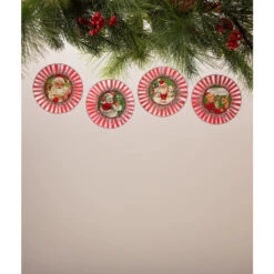 Bethany Lowe 3.5″ Set Of 4 Kitschmas Rosette Vintage Christmas Ornaments TL3366