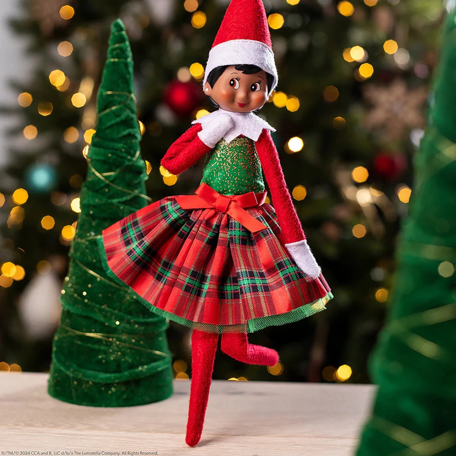 Have your elf dressed in her best this holiday season! This cutie features a green top decorated with golden flecks and a plaid skirt with green tulle underneath! This is the perfect outfit for the Christmas parties you’ll attend! Elf not included. Made by Elf On The Shelf. Item #: CCPLAIDDRÂ