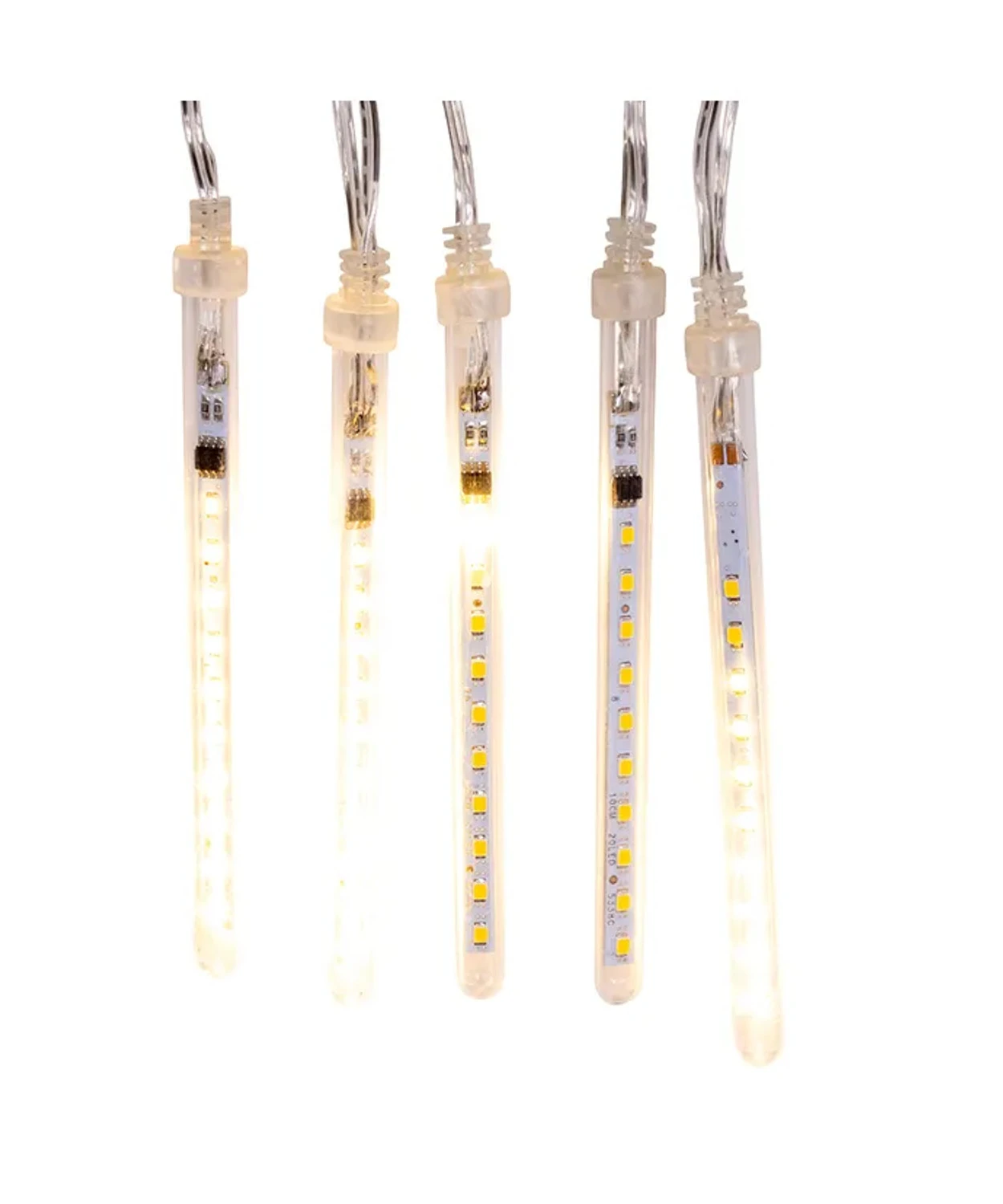 These gorgeous LED lights are designed to create the effect of falling snow! Each tube has brilliant LED lights that are spaced out and programmed to light up and give the illusion of falling snow! Perfect for covering the length of your outdoor porch or adding a fun element to your tree! Made by Kurt Adler. Dimensions: 32′ long strand. 20 light tubes that include 200 LED lights. Item #: AD1054
