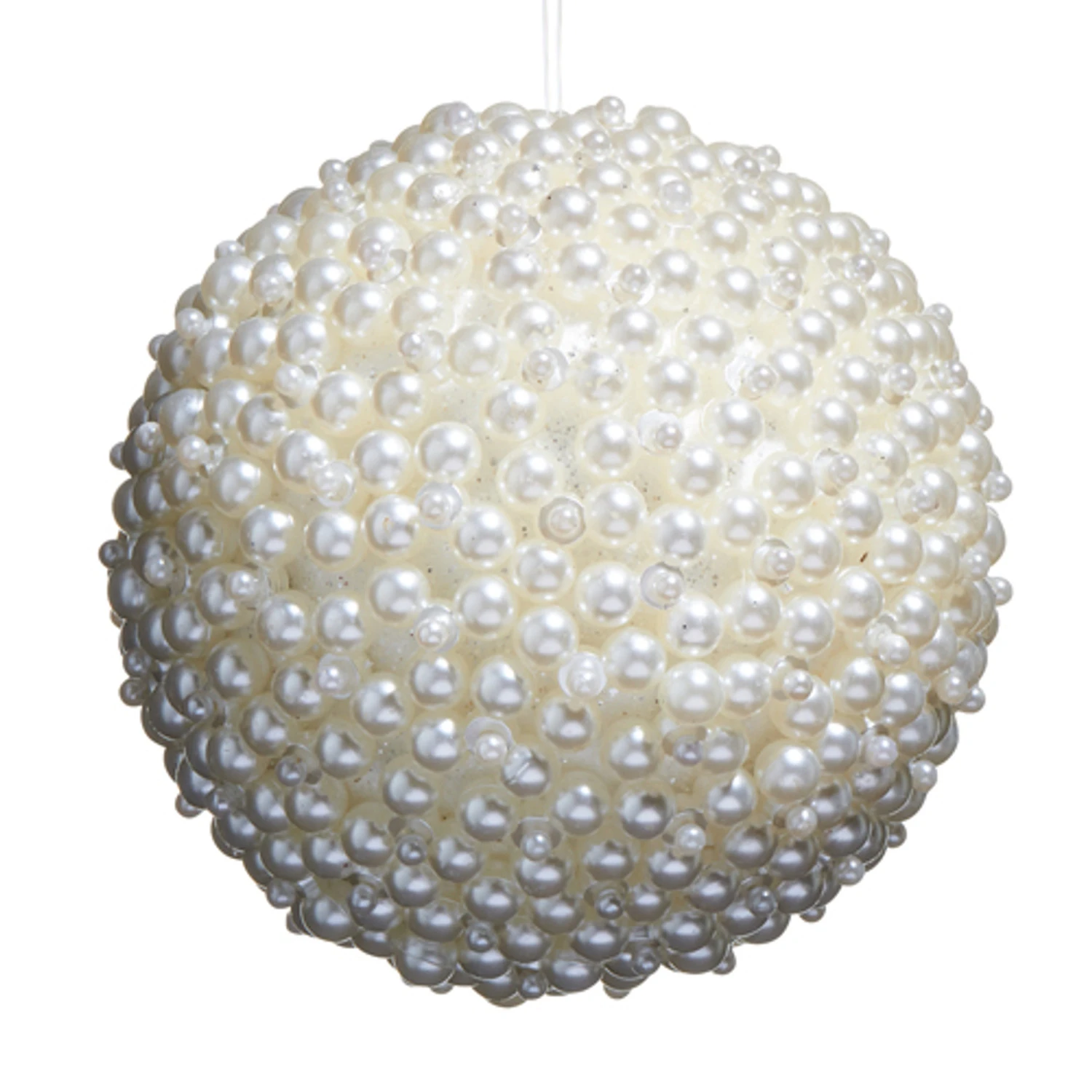 Encrusted with iridescent pearls, this ornament is perfect to hang around your tree or garland! Grab one, two, or five and get to decorating! Made Raz Imports. Made of plastic and iron. Dimensions: 4.5″. Item #: 4517596