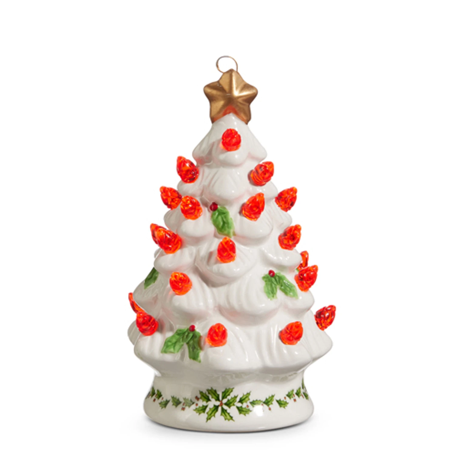 No space for your very own ceramic Christmas tree? Don’t worry- this little ceramic tree Christmas ornament will do the trick! It features a white ceramic Christmas tree with small red plastic bulbs that illuminate when the light inside is turned on! Little sprigs of holly leaves and berries decorate the base and all around the tree! Includes 2 Lr44 Batteries. 6 Hour Timer Repeats Every 18 Hours. Made by Raz Imports. Made of ceramic and plastic. Dimensions: 3″ D X 5″ H. Item #: 4419109