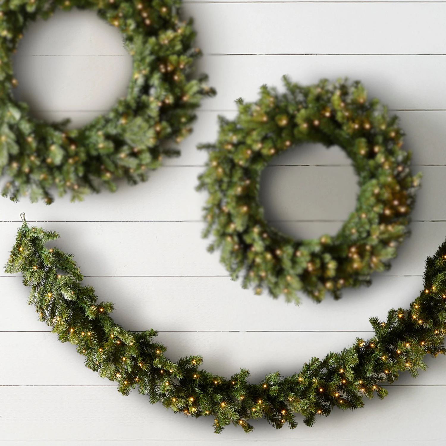 Illuminate your holiday décor with this 6′ mixed pine lighted real-feel Christmas garland. Lush, realistic pine branches are wrapped in warm-toned LED lights, creating a cozy, festive glow. Perfect for draping along your mantle, stair railing, or entryway, it can also be enhanced with picks, ornaments, or bows for a personalized holiday display.