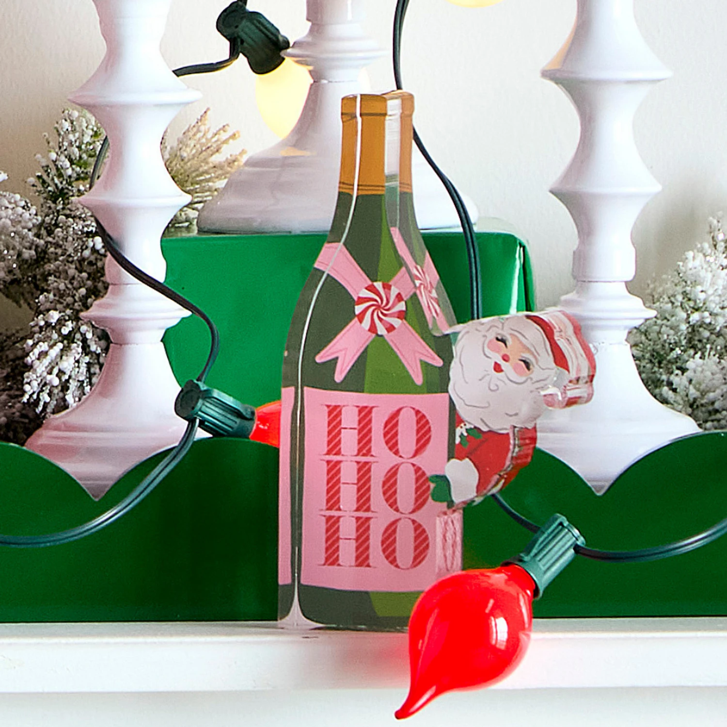 Ho! Ho! Ho! It’s time to party! Celebrate Christmas with a bottle of bubbly! This sign features a green bottle with a pink and red label and a smiling Santa popping around the side! Made by Raz Imports. Made of acrylic. Dimensions: 4.5″ L X 1″ W X 8″ H. Item #: 4528121